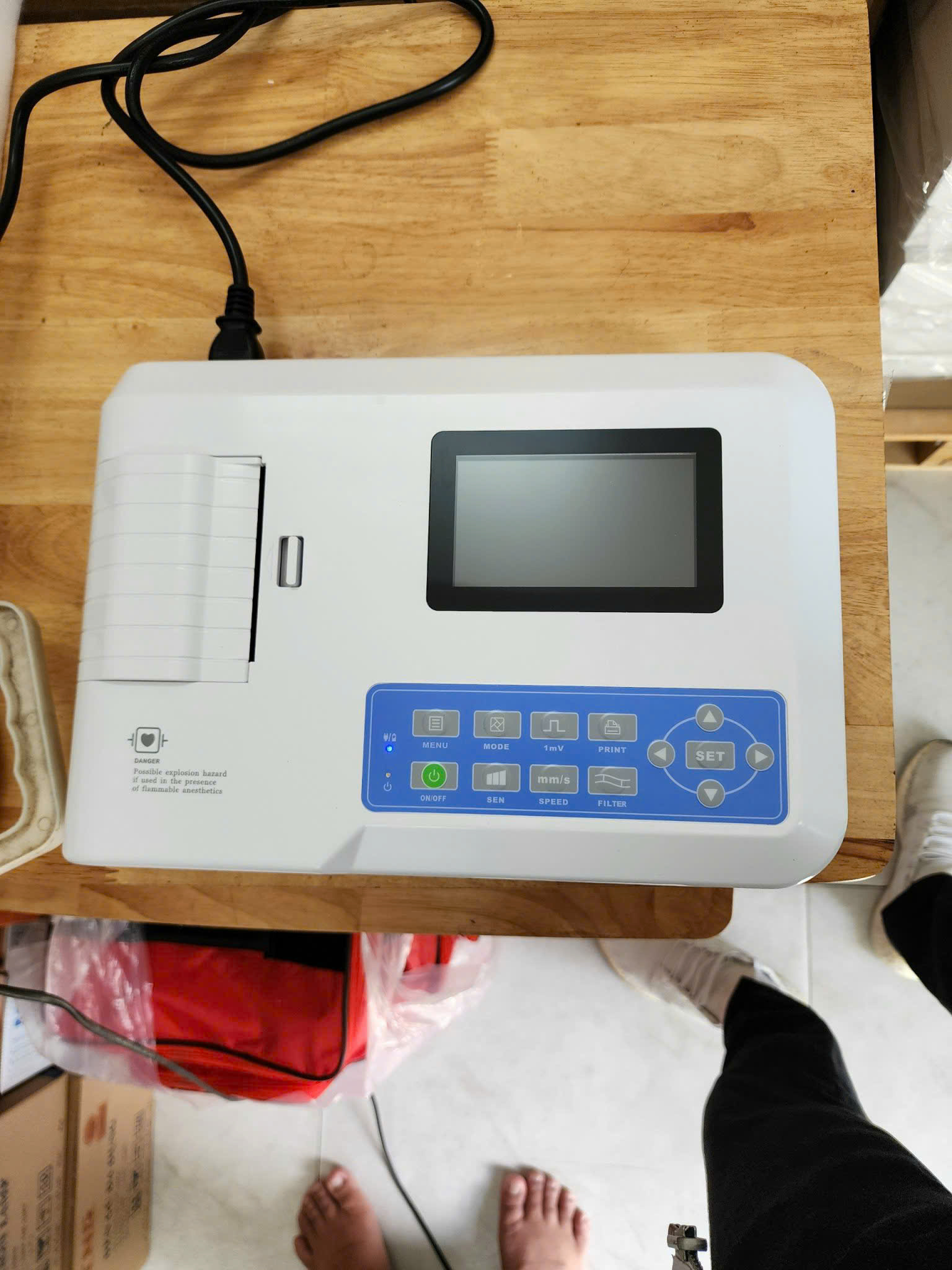 -máy đo điện tim 3 cần kỹ thuật số với đầu in nhiệt siêu bền